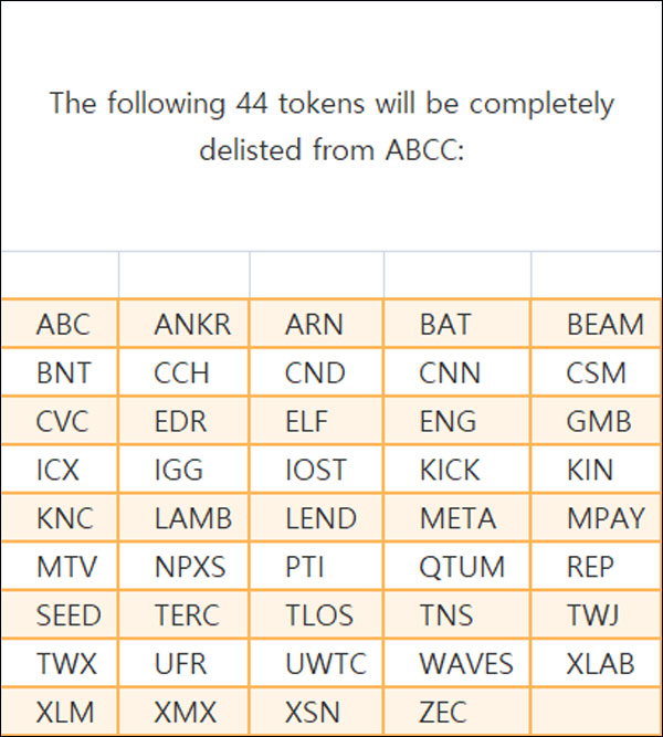 ABCC 2.0 공개 이후 67개 알트 코인 퇴출과 133개 거래쌍 제거