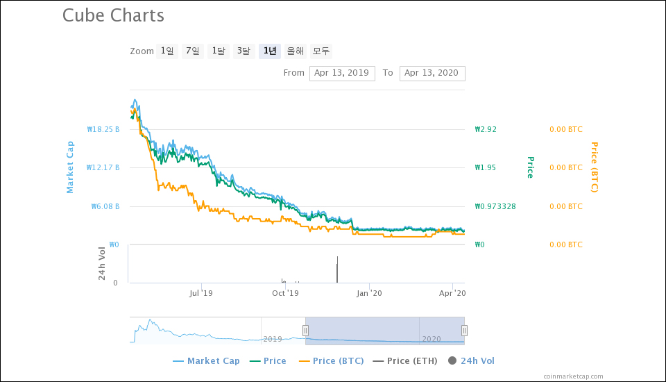 큐브는 빗썸의 상장 투표 '픽썸' 2라운드 1위로 지난해 12월 빗썸에서 상장 폐지된 이후 최종 방어선이 OKEx와 OKEx 코리아였다. 글로벌 3대장 거래소 중에서 한 곳이 백업하고 있었지만, 이번 상장 폐지로 OKEx의 이더리움 마켓과 OKEx 코리아의 원화 마켓에서 퇴출당하면 전체 거래량의 90%가 사라진다.