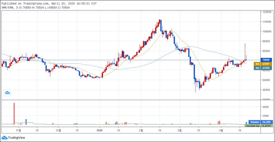 이에 비해 국내에서 발생한 N번방 이슈로 주목을 받은 모네로의 상폐 경고 영향은 미미할 것으로 보인다. 지난주 후오비 코리아의 퇴출에 이어 빗썸에서 경고를 받았어도 모네로는 굳건하다.