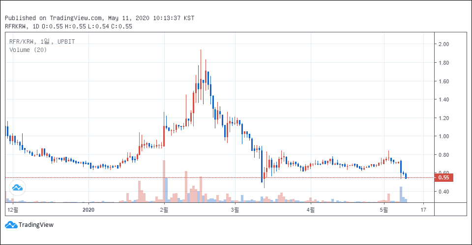 2018년 2월 12일에 최초로 발행한 이후 지금까지 49억9965만 개를 발행해 100%를 유통했다. 2년 만에 발행량을 100% 유통했지만, 정작 리퍼리움의 파트너와 연동은 신통치 않았다.