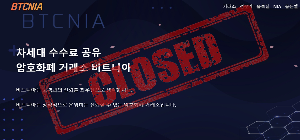 특금법 시행을 앞두고 중소형 거래소가 속속 폐업하는 가운데 비트니아(BTCNIA)도 한국 사업을 접는다. 지난 2월 日 미탭스가 국내에서 거래소 사업 철수를 공식적으로 밝힌 이후 '업사이드'가 매물로 나온 이후 해외 거래소의 국내 철수가 이어질 전망이다.