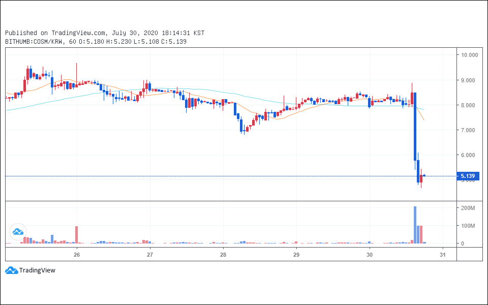 코스모코인은 무단 발행 이슈 전부터 업비트 싱가포르가 제일 먼저 상장을 폐지했고, 이슈가 불거진 7월 초에만 업비트와 업비트 싱가포르, 빗썸 등이 일제히 투자유의 종목으로 지정하는 상황까지 내몰렸다.