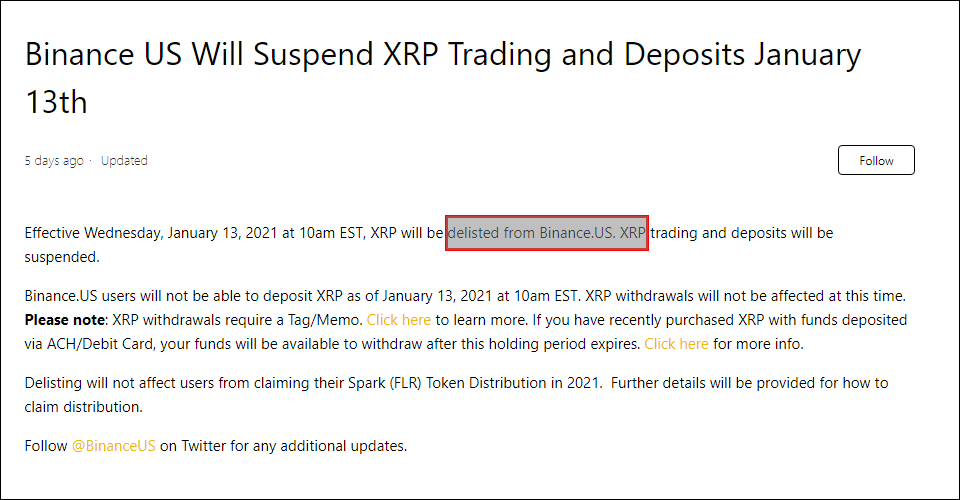 상장 폐지의 의미를 정지와 중단, 종료까지 포함하려면 리플의 첫 재판이 열리는 2월 22일에 결정될 전망이다. 리플이 승소하거나 미국 증권거래위원회(SEC)에 벌금을 납부하더라도 미국 거주자를 대상으로 거래가 재개될 가능성은 작다.