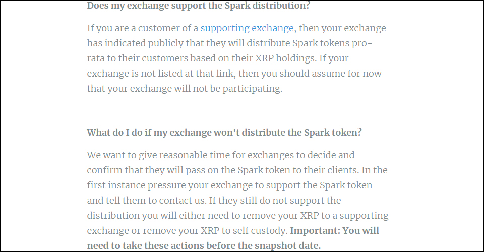 하지만 코어닥스는 플레어네트웍스의 스파크 에어드랍 참여의사를 공식적으로 밝힌 적이 없다. 재단 측은 지원하지 않는 거래소를 대상으로 먼저 연락하거나 스냅샷 전에 리플의 거래를 종료해야 한다고 설명할 정도로 국내 일부 거래소의 '리플-스파크 에어드랍'은 중요한 이슈였다.