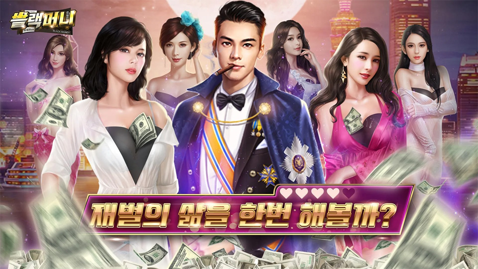 블랙머니는 슈퍼리치 인생을 꿈꾸는 이로 변신, '하루만에 10억 만들기'를 목표로 재벌의 삶을 게임에 녹인 타이틀이다. 출시 전부터 진행한 해외 유명한 게임의 스크린샷을 도용한 홍보로 물의를 일으킨 바 있으며, 시뮬레이션 장르와 어울리지 않는 무리한 결제 유도로 서비스의 한계에 부딪혀 사라지게 됐다.