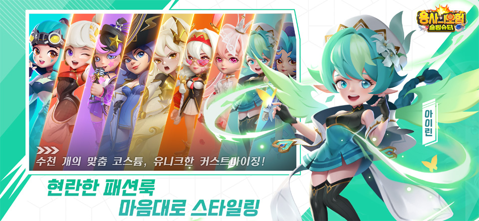 용사의모험 슬링슈터는 귀여운 스타일의 모바일 게임으로서 슈팅과 MMO, 두 장르를 결합해 정확한 포물선 조정을 통해 적과 보스를 처치하고, 승리를 거두는 MMO 슈팅을 표방했던 작품이다.