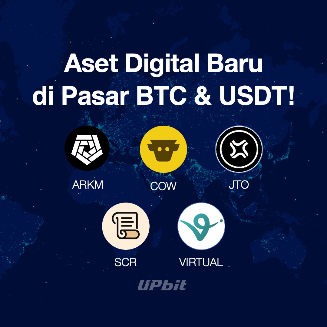 24일 업비트, 업비트 APAC 등에 따르면 업비트 인도네시아는 버추얼프로토콜(VIRTUAL), 지토(JTO), 스크롤(SCR), 아캄(ARKM), 카우프로토콜(COW) 등의 거래쌍을 비트코인과 테더 마켓에 개설했다.