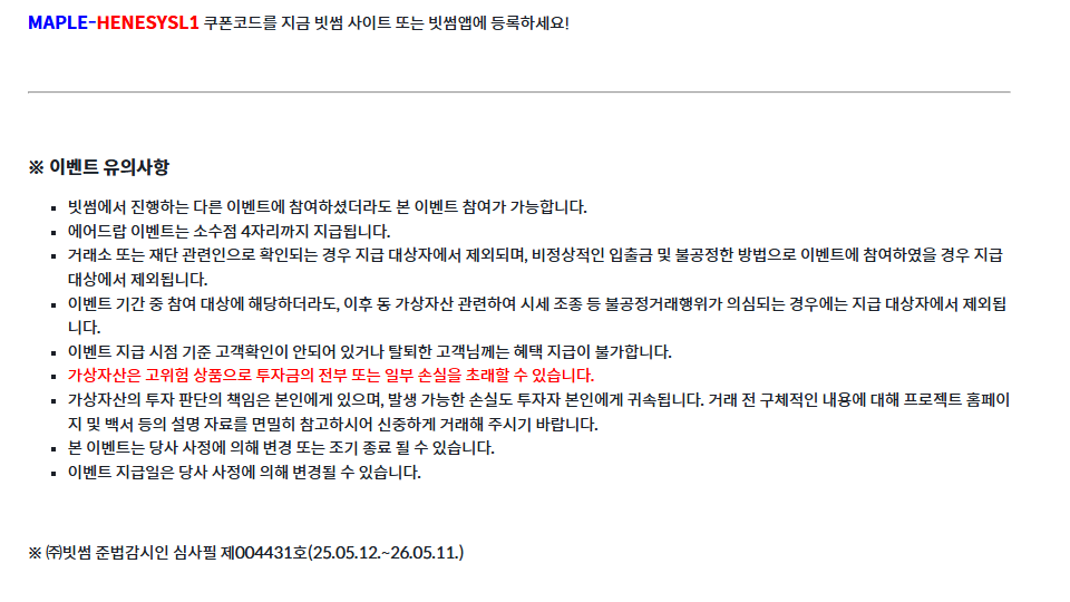 거래소 또는 재단 관련인으로 확인되는 경우 지급 대상자에서 제외되며, 비정상적인 입출금 및 불공정한 방법으로 이벤트에 참여하였을 경우 지급 대상에서 제외됩니다.