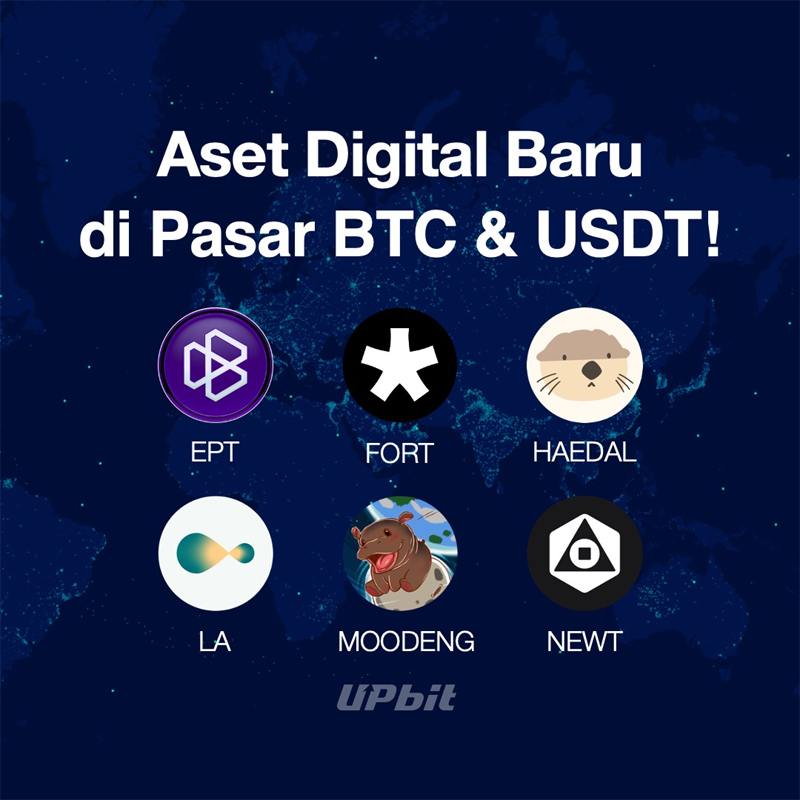 13일 업비트 인도네시아, CFX 등에 따르면 지난 10일 ▲밸런스(EPT)-1451 ▲포르타(FORT)-450 ▲해달 프로토콜(HAEDAL)-1463 ▲라그랑주(LA)-1525 ▲무뎅(MOODENG)-770 ▲뉴턴 프로토콜(NEWT)-1509 등 프로젝트 6종을 비트코인과 테더마켓에 상장했다.