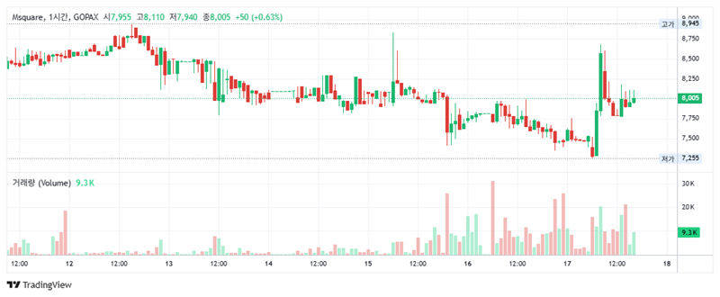 지난해 내외경제TV는 엠스퀘어를 고팍스의 단독 상장으로 분류한 바 있다. 앞서 고팍스는 지난해 5월 28일 엠스퀘어를 원화 마켓에 상장해 거래 지원, 데일리 거래, 메이커 거래, 에어드랍, 모두의 혜택 등 다양한 프로모션을 진행 중이다.