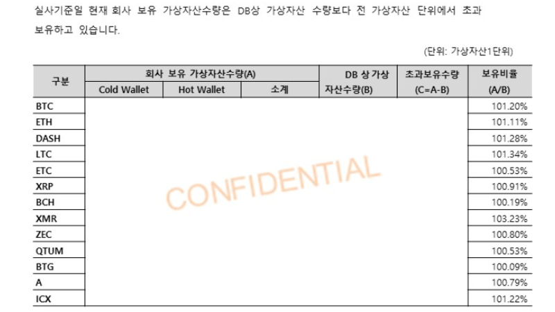 지난해 빗썸이 공개한 분기 보고서에서 회사가 보유한 비트코인은 175개이며, 위탁받아 보관 중인 수량은 42,619개다.